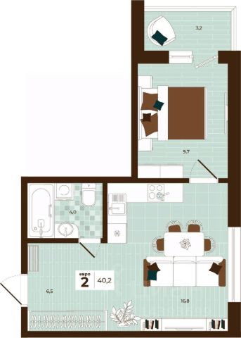 Продаётся 2-комнатная квартира в строящемся доме (Дом 28), срок сдачи: I-кв. 2027, общей площадью 40.2 кв.м., на 6 этаже. Расположение, транспортная доступность Новый жилой комплекс "Юго-Восточный" строится в Туле, в 3,5 км от центра города. Благодаря удачным транспортным развязкам, автолюбители смогут доехать до центральных кварталов примерно за 5 10 минут, составив наиболее быстрый и удобный маршрут с учетом загруженности дорог. Проблем с мобильностью не возникнет и у пассажиров общественного транспорта. Рядом с домом расположены остановки автобусов и маршрутных такси, которые быстро довезут до любого района города. Так, чтобы добраться до центра, следует дойти пешком до остановки "Медтехника", где останавливается маршрутное такси, доезжающее до центральных кварталов всего за 7 8 минут. Инфраструктура Район, где возводится новый жилой комплекс, активно застраивается, и сеть инфраструктуры сов временем будет расширяться. Но и сейчас все, что нужно для комфортной жизни в городе, находится недалеко от жилого комплекса. В шаговой доступности расположены продуктовые магазины: "Виктория", "Овощи-фрукты", Магазин рыбы и мяса птицы, магазин мяса и колбас "У Максима", супермаркеты "Дикси", "Пятерочка", "SPAR". Неподалеку находится гипермаркет "Линия", крупный торговый центр, в котором расположены отделения банков, гипермаркет "Глобус", салон оптики, мебельный магазин "Столплит", зоомагазин "Четыре лапы" и пр. В соседнем здании находится строительный гипермаркет "Леруа Мерлен", за ним крупный магазин товаров для спорта, туризма и активного отдыха "Декатлон".Недалеко от жилого комплекса открыты кафе и рестораны: кофейня "Bonape", пиццерия "Культура", кафе "Вкуснов", кафе быстрого обслуживания "Rapido", ресторан "У фонтана" и пр.В районе есть аптеки, поликлиники, диагностические центры. В шаговой доступности от жилого комплекса расположено несколько детских садиков, в том числе, садик комбинированного вида "Алые паруса". Есть дошкольные отделения, входящие в состав образовательных центров, Центры развития ребенка. Поблизости расположены средние школы, в том числе, школа для детей с ОВЗ. Рядом с жилым комплексом находится Тульская Духовная Семинария и Суворовское училище. Надежность застройщик: достраивает объект ООО Ин-Групп.АрхитектураЖилой комплекс будет представлен 19 монолитно-кирпичными корпусами переменной этажности, выполненными в едином архитектурном стиле. При строительстве ЖК "Юго-Восточный" применяются современные материалы высокого качества, которые обеспечивают надежность домов и комфортный микроклимат в помещениях. Каждая секция оснащается современными лифтами. Помещения общего пользования отделываются экологичными материалами. Квартиры предлагаются однокомнатные (от 43,9 кв. м), двухкомнатные (от 45,8 кв. м), трехкомнатные (от 60,4 кв. м) и четырехкомнатные (от 87,2 кв. м), а также уютные студии (от 28,9 кв. м).На внутренней территории проводится комплексное благоустройство: озеленение, организация игровых площадок, мест для отдыха и заня