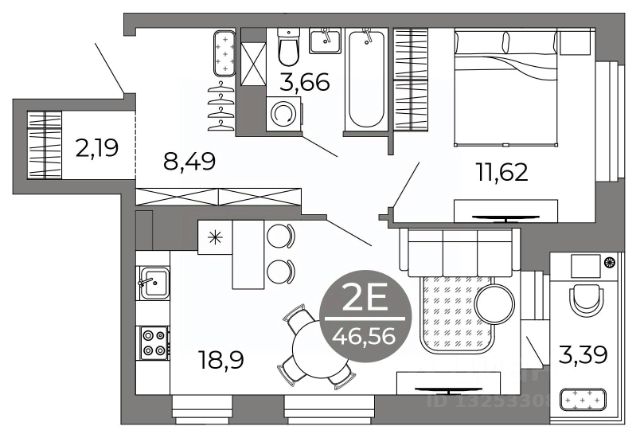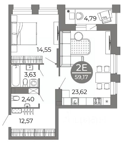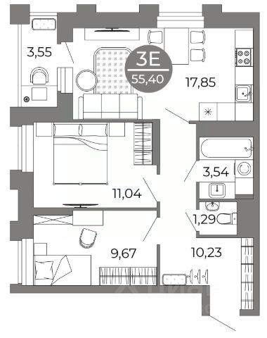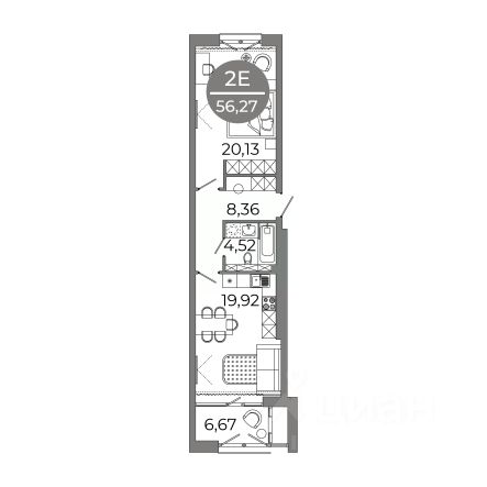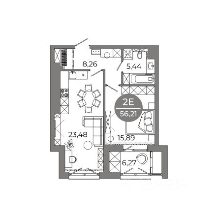 Квартира: 2 к 55,40 кв.м., 23 этаж в комплексе Галилей, 1 очередь, корп.2, сдача: 3кв. , этажей: 25, адрес Воронеж г., Кривошеина ул., д. 13/14, Застройщик: ГК Крайс.
