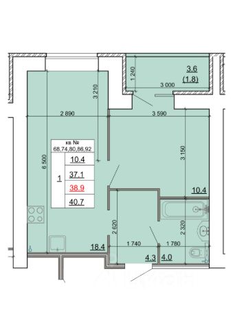 Продаётся 1-комнатная квартира в строящемся доме (з/у 90 (9-я очередь)), срок сдачи: I-кв. 2027, общей площадью 41.4 кв.м., на 9 этаже.