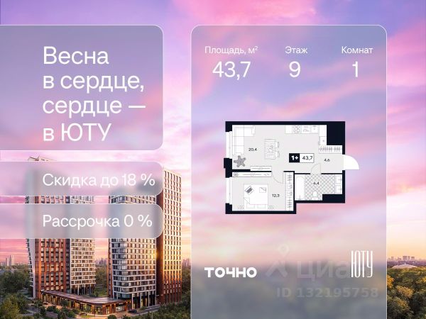Скидка до 18% в апреле на выделенный пул лотов! ЮТУ — камерный проект бизнес-класса с исключительной архитектурой, видовыми квартирами и подходом к большой благоустроенной набережной канала имени Москвы. Проект создает идеальный баланс жизни в городе. Это приватный оазис, где в любой момент можно сменить обстановку и выбрать любой из тысячи маршрутов к активному отдыху и ярким впечатлениям. Удачное месторасположение: • Первая линия в прибрежной части Химкинского водохранилища • Исключительно тихий и зелёный район Южное Тушино • За 2 минуты можно спуститься к воде, за 10 минут найти зеленые парки и готовую инфраструктуру, за 30 минут доехать до Кремля Концепция проекта: • Две футуристичные башни, соединенные торговой галереей от бюро ATRIUM • 60 неповторяющихся планировок: квартиры с угловым панорамным остеклением, мастер-спальнями и гостиными до 39м², а также просторные квартиры площадью до 128,6 м² Чувство эксклюзивности: • Своя приватная жилая экосистема только для резидентов домов • Лаунж-терраса на крыше • В проекте предусмотрен закрытый двор-парк. Прогрессивные технологии: • 3-х уровневая система безопасности (Face ID, BLE-метки, видеонаблюдение) • Умный паркинг с распознаванием номеров Проект федерального девелопера ТОЧНО, который входит в ТОП-5 девелоперов России по объемам строительства.