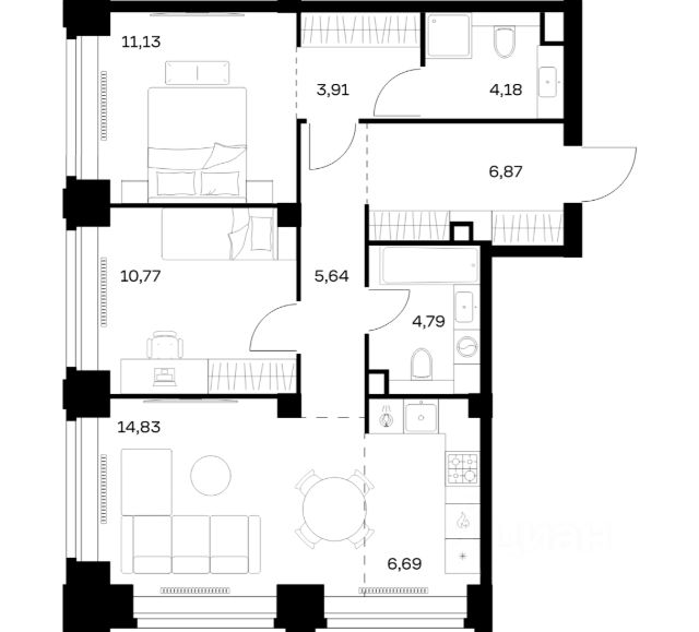 Строим кварталы для жизни с заботой о будущем. Предлагается 1-комнатная квартира комфорт-класса площадью 38,69 кв.м в корпусе 7.3 на 7-м этаже, в жилом комплексе "Богдановский Лес".