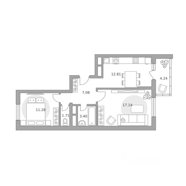 Продаётся 1-комнатная квартира 203, площадью 36,82 м², на 14 этаже в ЖК "Новая Алексеевская роща" корпус 4. Стоимость — от 7682905 руб. Квартира без отделки, планировка односторонняя, окна во двор.
