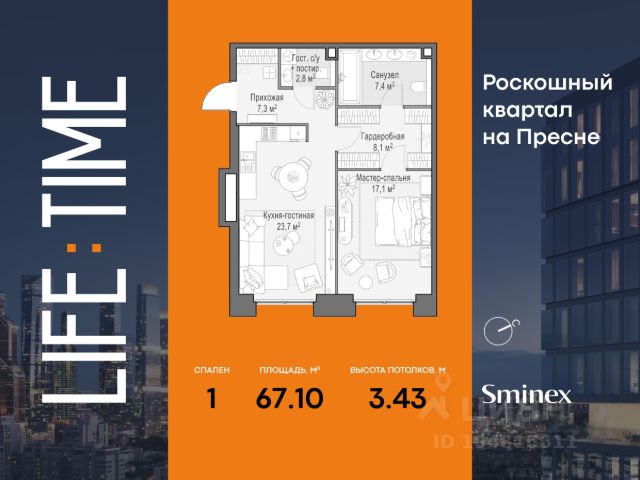 Роскошный двухэтажный пентхаус, из окон которого открывается прямой вид на парк "Красногвардейские пруды" и внутренний двор-парк. Площадь 422,3 кв. м позволяет с комфортом расположить четыре спальни, просторную гостиную и кабинет. Гостиная с камином, выходом на террасу и панорамными видами станет точкой притяжения всей семьи. Сценарии времяпрепровождения и отдыха на просторной террасе, площадью 121,6 кв. м разнообразны: обеденная зона, лаундж-пространство, лежаки для принятия солнечных ванн. Life Time - роскошный современный квартал на Пресне, в наиболее быстро растущем премиальном районе ЦАО. Его насыщенная инфраструктура и выгодное расположение дарят время для жизни. Вы больше не тратите его на дорогу или ожидание, при этом ни в чём себе не отказывая. На территории предусмотрено всё для комфортной жизни: • двор-парк площадью 1,8 гектара с прудом и фонтанами; • Clubhouse - инфраструктурный центр в отдельном здании с исчерпывающими возможностями для спорта, отдыха и досуга только для жителей; • спортивная инфраструктура на улице и в помещении, в том числе бассейн длиной 25 метров, хот-таб, хаммам, сауна, бьюти-зона; • клубная гостиная с террасой; • всё для развития и досуга детей любого возраста, в том числе детский сад и школа. Life Time находится в центре сложившегося премиального района, в окружении многочисленных парков. Удобная транспортная доступность и прямой выезд на Звенигородское шоссе позволяют без проблем добраться до Садового кольца и Москва-Сити. Архитектурный стиль квартала - роскошный минимализм. Дома десятилетиями будут выглядеть современно.