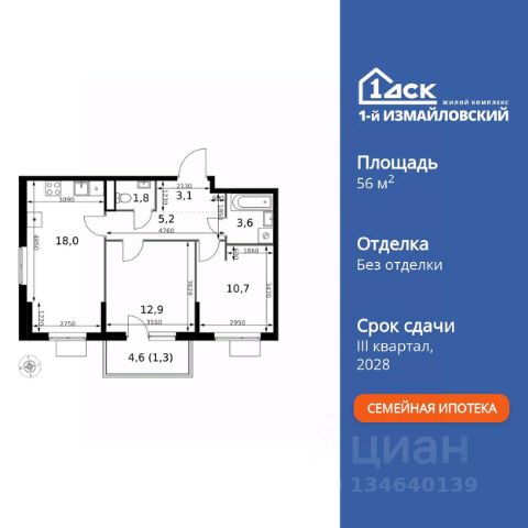 Прямая продажа от застройщика! Жилой Комплекс Комфорт класса. Продаётся 2-к квартира номер 20 общей площадью 53.3 кв.м. на 3-м этаже 25 этажного здания. Предчистовая отделка. Цена с учётом скидки. Особенности квартиры: - Организуем показ в удобное для вас время! - Угловая планировка - больше пространства для ваших идей. - Увеличенное количество окон - дополнительное освещение и свежий воздух. - Гостевой санузел - комфорт и удобство для ваших гостей. - Гибкая планировка - создайте пространство по своему вкусу. - Место для игры/занятия спортом - идеальное пространство для активных детей. - Можно оборудовать рабочее место - комфорт для работы и учёбы. - Линейная кухня - функциональность и практичность в одном решении. - Ниша под шкаф - компактное и удобное место для вещей. - Лоджия - уютное место для отдыха и тишины. Квартира с предчистовой отделкой. Вам не придется заниматься черновыми и трудоёмкими работы, а чистовую отделку и дизайн - сделайте на свой вкус. Информация о комплексе: ЖК "1-й Измайловский" в восточной части Москвы: идеальное место для жизни в окружении 14 000 гектаров леса. Наслаждайтесь лыжными прогулками зимой и пробежками летом в сиреневом саду и лесопарках. Комплекс отгорожен от шоссе застройкой первой линии и садами здоровья. Из окон открываются виды на парк "Лосиный остров" и зеленые дворы. Близость к природе и спортивным объектам создаёт атмосферу здорового образа жизни. Транспортная доступность: Не более 2,5 км до станций метро "Щёлковская" и "Черкизовская" и МЦК "Локомотив". Щёлковское шоссе соединяет квартал с Северо-восточной хордой и МКАД, Центральным автовокзалом и Восточным железнодорожным вокзалом. Две автобусные остановки в паре минут ходьбы и 11 маршрутов общественного транспорта. На автомобиле 3 минуты до СВХ 12 минут до ТТК 15 минут до Садового кольца Внутренняя инфраструктура: ЖК расположен в историческом районе Москвы с развитой инфраструктурой. В шаговой доступности: 6 детских садов (включая собственный на 125 мест), 3 школы, поликлиники, торговые центры и парки. Проект создан для здорового образа жизни: рядом стадионы, спортивные объекты для футбола, баскетбола и конного спорта, а также более 30 км беговых и велодорожек. Всё для активной жизни в окружении зелени и современной инфраструктуры. Квартира с предчистовой отделкой - ваш дизайн без черновых работ Купить квартиру от застройщика в районе Гольяново в Москве.
