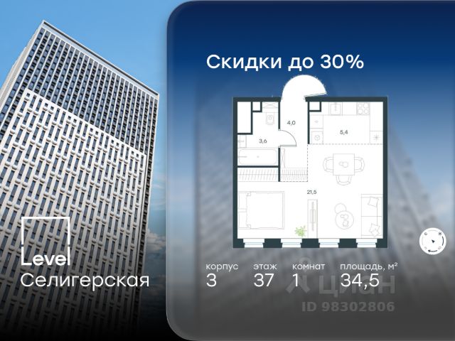 Цена указана с учётом скидки при 100%-й оплате, несубсидированной ипотеке, рассрочке (кроме программы "Рассрочка 0%"). В жилом квартале, расположенном в южной части района Западное Дегунино, продаётся 2-комнатная квартира площадью 60.20 кв.м без отделки. Квартира расположена на 32 этаже 40-этажного корпуса 3 в жилом комплексе комфорт-класса Level Селигерская (компания Level Group/Левел групп). Отличная транспортная доступность: - 10 мин. пешком до станции метро "Верхние Лихоборы"; - 15 мин. пешком до станции метро "Селигерская"; - 20 мин. пешком до станции МЦД-3 "Моссельмаш"; - 11 мин. на авто до МКАД; - 13 мин. на авто до ТТК; - 16 мин. на авто до Садового кольца. Расположение Район отличается богатой социальной инфраструктурой: школы, детские сады, поликлиники, магазины, фитнес-клубы, торговые центры - всё близко к дому. Рядом с Level Селигерская расположено 5 парковых зон. В 3 минутах от дома расположен перспективный сквер-парк. В 10 минутах пешком находится парк им. Святослава Фёдорова, в 13 минутах на велосипеде - парк "Ангарские пруды". В 7-11 минутах на автомобиле - два крупных природных объекта: Тимирязевский парк и Главный ботанический сад Российской академии наук. Благоустройство Внутренние дворы жилого комплекса огорожены от машин, а их функциональное наполнение отличается в зависимости от очереди строительства. На территории 2-й очереди жителей ждут уютные навесы с качелями, павильон-читальня, волейбольная площадка, беседки, а также детские и спортивные площадки. Технологии и инженерия Для входа на территорию комплекса предусмотрен единый ключ доступа. Все общественные зоны оснащены камерами видеонаблюдения, по заявке собственнику предоставляется возможность просмотра изображения отдельных видеокамер на его мобильном устройстве. При въезде в паркинг функционирует система распознавания госномеров. Кроме того, для комфорта жителей создано мобильное приложение, с помощью которого можно удаленно контролировать доступ на придомовую и жилую территории. Другие преимущества жилого комплекса - Высокая освещённость квартир: в большинстве из них не менее трёх окон; - Супермаркет, магазины, кафе, пекарни и многое другое на первых этажах домов; - Частный детский сад; - Стильные дизайнерские лобби с высокими потолками до 4,3 м. и окнами в пол, для питомцев предусмотрена лапомойка; - 30+ планировочных решений: от компактных студий до просторных семейных квартир; - С каждого этажа дома на лифте можно спуститься в подземный отапливаемый паркинг." Продам квартиру от застройщика на проезде Ильменский в Москве.