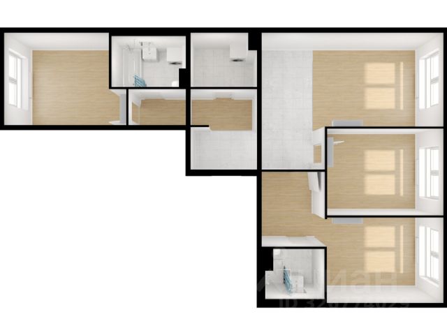 Продаётся 3-комнатная квартира 444, площадью 67,96 м², на 8 этаже в ЖК "Живописный" корпус 2.2. Стоимость — от 13769127 руб. Квартира без отделки, планировка угловая, окна во двор.