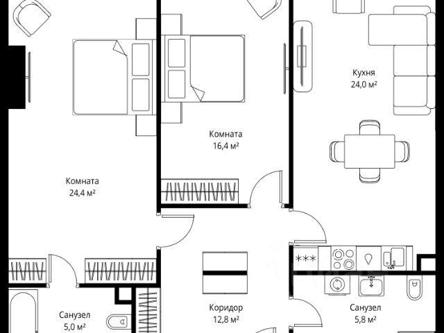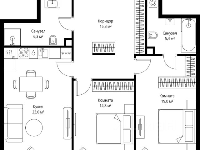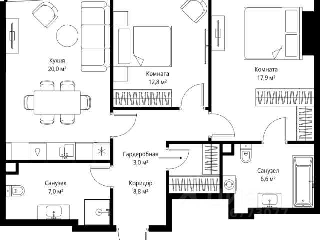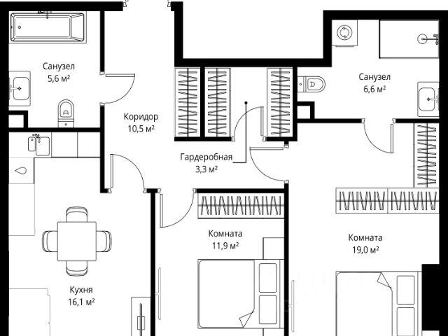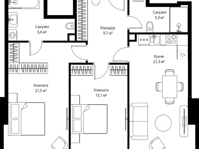• ✅ Минимальная площадь: 34,8 м²