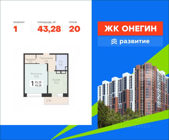Продается квартира площадью 41.28 кв. м с отделкой white box на 22 этаже 22 этажного дома. Квартира находится в новом жилом комплексе "Онегин", расположенном по адресу: Московская область, г. Подольск, ул. Садовая 3, корп. 1. "Онегин" - начало новой жизни. Проект от девелопера "Развитие" расположился в центральной части Подольска - города-спутника столицы. Жилой комплекс состоит из 10 секций переменной высоты (20 - 22 этажа) и включает в себя 510 квартир, собственную инфраструктуру, закрытый благоустроенный двор-парк, подземный паркинг на 262 машино-места. Прекрасный баланс города и природы - ЖК "Онегин". Расположение Пешком: - 5 мин. до остановки "Красная горка"; - 10 мин. до склона у реки Пахры; - 30 мин. до МЦД "Силикатная" (или 15 мин. на автобусе). На автомобиле: - 3 мин. до проспекта Ленина с выездом на Симферопольское шоссе; - 10 мин. до центра Подольска; - 30 мин. до ст. метро "Бульвар Дмитрия Донского"; - 35 мин. до МКАД; - 1 час до центра Москвы. Благоустройство - большой приватный двор только для пешеходов; - собственный сквер с всесезонной растительностью; - яркий игровой комплекс для детей всех возрастов; - спортивный корт с тренажерами; - площадка для баскетбола и футбола; - стильная входная группа с витражным остеклением; - 2 пассажирских лифта и 1 грузовой в каждом подъезде; - беседки и скамьи для отдыха; - экологически-чистое игровое и спортивное оборудование; - освещение в темное время суток; - гостевая автостоянка на отдельной территории; - все сервисы бытовых услуг в шаговой доступности. Окружение - досуговые пространства в любое время года: парк культуры и отдыха имени В. Талалихина, музей-заповедник "Подолье", горнолыжный комплекс "Красная Горка", исторические усадьбы "Остафьево" и "Дубровицы"; - школа и детский сад в 5 минутах ходьбы; - торгово-развлекательные центры "Капитолий", "Галерея", "Кварц"; - 3 фитнес-центра, стадионы "Зенит" и "Подолье", 4 взрослых и детских бассейна.