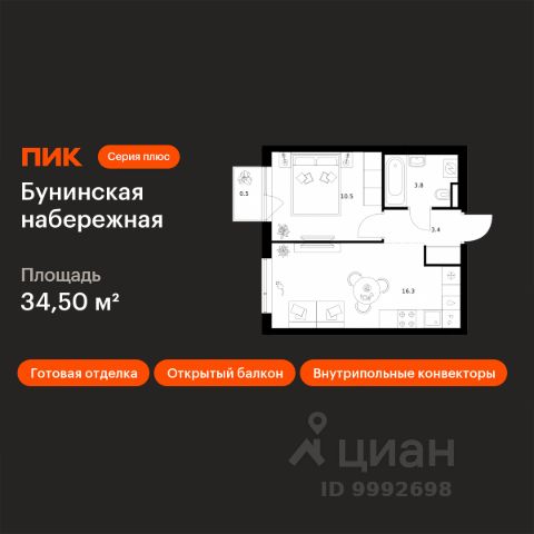 В жилом комплексе, расположенном по соседству с ландшафтным парком "Южное Бутово", продается студия площадью 27.20 кв. м. без отделки. Квартира расположена на 2 этаже 1 корпуса в жилом квартале комфорт-класса "Новые Смыслы" (ГК Unikey/Юникей).