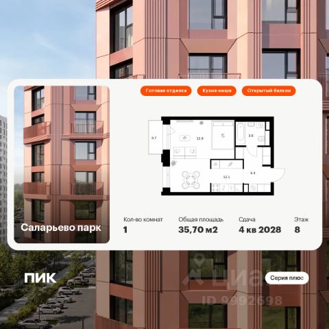 Продаётся 1-комн. квартира площадью 30,6 кв.м на 15 этаже 24 этажного дома (Корпус 82.4, Секция 4) проекта ПИК Саларьево парк. Светлый просторный подъезд на уровне земли, функциональная планировка, большие окна, предчистовая отделка. Жилой район "Саларьево парк" расположен в Новой Москве, в четырёх километрах от МКАД по Киевскому шоссе. Две станции метро: "Саларьево" и "Филатов луг", — находятся в пешей доступности от проекта. Дойти до них можно за 510 минут. В квартале уже создана качественная среда, где есть абсолютно всё для полноценной жизни, работы и отдыха. Благодаря удобному расположению проекта всё важное будет рядом: детские сады, школы, кафе и рестораны, шопинг в торговых центрах, фитнес и даже аэропорт. Все корпуса в квартале гармонично сочетаются, образуя единую городскую среду. Между собой их объединяет невысокая этажность и натуральная цветовая гамма. Здесь приятно гулять и проводить время на улице всей семьёй. В "Саларьево парке" создана уникальная образовательная среда, включающая в себя шесть школ, рассчитанных на 6 250 учеников. Две из них уже открыты, их посещает 2 300 детей. Также на территории "Саларьево парка" находится 12 детских садов, один из которых с бассейном. Сейчас уже открыты 7 садов. В "Саларьево парке" открыта уникальная игровая площадка — PlayHub "Оригами". Здесь есть ручей, горка-труба и рельефные холмы. Взрослые смогут отдохнуть в уютном кафе, пока дети играют. Также на территории проекта есть SportHub — большая спортивная зона, разделённая по интересам и возрастам. Здесь можно заниматься разными видами спорта: футболом, баскетболом, волейболом и стритболом. Зимой центральную часть площадки превращают в каток. Во дворах-парках жилого квартала есть места для отдыха, детские и спортивные площадки. На первых этажах домов расположены магазины, кафе и полезные сервисы. Также вблизи проекта есть несколько масштабных торговых центров. До ТЦ "Саларис" пять минут пешком, до "Рио", Metro Cash & Carry и "Леруа Мерлен" — пять минут на автомобиле. Артикул 1032702 (Застройщик ООО "Специализированный Застройщик "Тирон") Продается квартира от застройщика рядом с метро Румянцево.