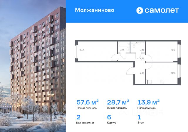УСПЕЙ ПО СЕМЕЙНОЙ ИПОТЕКЕ БЕЗ НАЦЕНКИ! От 31 600 рублей в месяц! Прямая продажа от застройщика! Жилой Комплекс класса Комфорт Плюс. Продаётся 2-к квартира номер 421 общей площадью 59.4 кв.м. на 2-м этаже 12 этажного здания. Чистовая отделка. Цена с учётом скидки. Особенности квартиры: - Просторная спальня, в которой можно разместить большую кровать. - Распашная планировка - отличное сочетание удобства и свободы. - Раздельный санузел - больше удобства для всех членов семьи. - Лоджия - уютное место для отдыха и тишины. - Панорамное остекление лоджии - открывает вид на окружающий мир. Информация о комплексе: В концепции благоустройства гармонично сочетаются черты двух городов. Территорию комплекса пронизали стрелы прогулочных бульваров, уменьшенные копии петербургских проспектов. Стремимся, чтобы каждый элемент ЖК был продуман, наполнен комфортом и заботой для всех жителей, включая четырехлапых. В каждой квартире подключен базовый пакет Умная квартира забудьте о беспокойстве о протечке; настройте свои сценарии управления техникой и электричеством; общайтесь с Умной квартирой голосом; Можете легко расширить базовый пакет и подключить дополнительные опции и устройства, чтобы из любой точки мира управляй работой бытовых приборов и систем, например: включайте разогрев ужина; регулируйте яркость яркость света; регулируйте громкость музыки; настраивайте работу теплых полов. Транспортная доступность: 15 минут пешком до станции Молжаниново (Планерная), МЦД3. Всего в 7 км от МКАД по Ленинградскому шоссе, сразу после пересечения с Международным шоссе. Внутренняя инфраструктура: Для детских игр и отдыха взрослых в квартале предусмотрено множество вариантов уютных московских двориков. Детские зоны отделены от взрослых, спортивные площадки и зоны воркаута с их шумными играми вынесены за пределы дворов. В обустройстве всех зон использованы только экологичные материалы. Оборудование для игровых площадок разрабатывалось с привлечением детских психологов. Для любителей велосипедов проложены велодорожки, ведущие к живописным прудам. Если же вам нужно в магазин, аптеку, а может, просто захотелось посидеть с семьей или друзьями в кафе по соседству - все необходимое расположено на первых этажах зданий с внешней стороны комплекса.