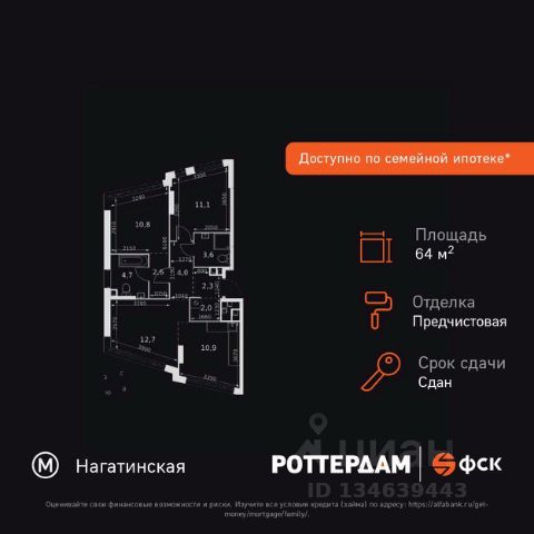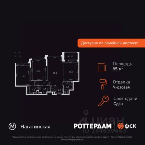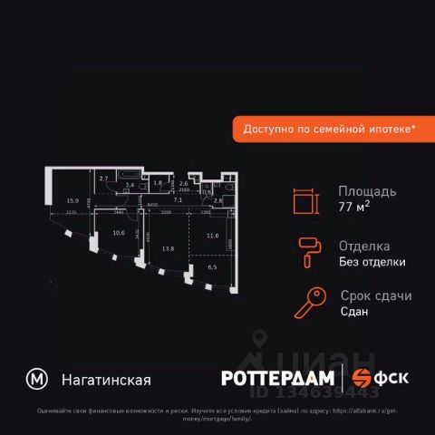 Прямая продажа от застройщика! Жилой Комплекс бизнес-класса на набережной возле Нагатинского причала. Продаётся 3-к квартира номер 115 общей площадью 64.2 кв.м. на 16-м этаже 29 этажного здания. Предчистовая отделка. Цена с учётом скидки. Особенности квартиры: - Организуем показ в удобное для вас время! - Мастер-зона с санузлом и гардеробной. Всё для вашего комфорта и удобства, включая личный санузел и гардероб. - Угловая планировка - больше пространства для ваших идей. - Мало квартир на этаже - уединение и тишина. - Окно в ванной - натуральное освещение для уюта и комфорта. - Увеличенная ширина окна/окон - больше света и визуального простора. - Увеличенное количество окон - дополнительное освещение и свежий воздух. - Угловое остекление - свет и воздушность в каждой комнате. - Гостевой санузел - комфорт и удобство для ваших гостей. - Душ помимо ванной - дополнительное удобство для вашей семьи. - Постирочная - организуйте пространство для стирки и сушки вещей. - Гибкая планировка - создайте пространство по своему вкусу. - Место для игры/занятия спортом - идеальное пространство для активных детей. - Просторная мягкая зона - комфорт и уют для отдыха всей семьи. - Возможность добавить спальное место - дополнительный комфорт для гостей. - Гардеробная - удобство для хранения и организации вещей. Квартира с предчистовой отделкой. Вам не придется заниматься черновыми и трудоёмкими работы, а чистовую отделку и дизайн - сделайте на свой вкус. Информация о комплексе: ЖК "Роттердам": идеальная транспортная доступность для любого настроения. Пешая доступность до метро, удобный выезд на Варшавское шоссе к ТТК и Садовому кольцу, а также живописная Нагатинская набережная с маршрутом до Кремля. Выбирайте метро, автомобиль, трамвай или велопрогулки вдоль реки - всё под рукой. Транспортная доступность: Всего в 5 минутах пешком до метро Нагатинская и 8 минутах от МЦК Верхние Котлы. Рядом Аэроэкспресс до метро Домодево. До ТТК 2,2 км и 4,9 км до Садового кольца. Внутренняя инфраструктура: ЖК "Роттердам": идеальный баланс работы и отдыха на Нагатинской набережной. Коворкинги, детские площадки и игровой центр для всей семьи. Рядом - 5 парков, спортивные и деловые центры в шаговой доступности. Архитектура сочетает высотные и малоэтажные здания без ощущения "каменных джунглей". Панорамные виды из окон верхних этажей и прямой выход к Москве-реке. Уединённость, безопасность и комфорт для тех, кто ценит личное пространство и время. Квартира с предчистовой отделкой - ваш дизайн без черновых работ