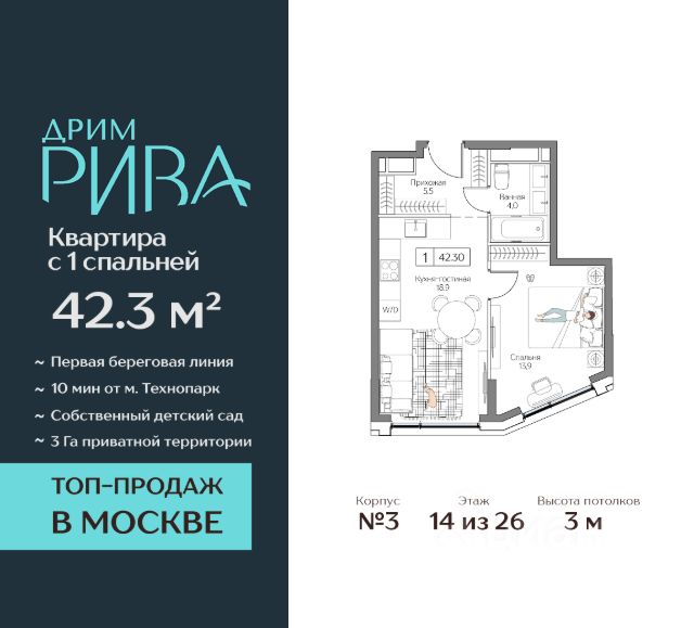 Ощущение курорта на побережье, где каждая деталь призвана доставлять исключительный комфорт и радость. Прибрежный квартал Dream Riva — настоящее воплощение магической атмосферы. Полностью готовая инфраструктура престижного курорта "Остров мечты" в самом сердце Москвы на первой береговой линии. Всё, что нужно для размеренной жизни, работы, отдыха и развлечений. Начните жить в удовольствие здесь. Новая реальность Жить в Dream Riva — значит, осуществить мечту никуда не спешить и планировать свои будни так, как хочется. Преимущества, так щедро собранные в уникальной локации Острова мечты, подарят жителям роскошь личного курорта, наполняя дни самыми счастливыми впечатлениями. Уединённая и обособленная локация с невероятным парковым и ландшафтным массивом в 44 Га для прогулок, спорта, пикников и незабываемых вечеров с близкими. Комплексная готовая инфраструктура для развлечения, отдыха, шопинга и работы. Ежедневно открывать для себя что-то новое и при этом оставаться рядом с домом. Первая линия Москвы-реки с открытыми видами на воду и город. Благоустроенная набережная с гастропроменадом, которая станет частью городского прогулочного маршрута и соединит локацию с другими развлечениями столицы. Авторская архитектура в курортной концепции, воплощающей силу природных стихий в каждой детали оформления и благоустройства. Собственный приватный прибрежный парк размером 3 Га возле дома с зонами для спорта и йоги, открытым солярием вдоль береговой линии, многофункциональными детскими игровыми комплексами, местами для релакса, прогулок и времяпрепровождения всей семьей. Формат приватного досуга и эксклюзивные привилегии — клубная гостиная, детское кафе с игровой комнатой, lounge-бар, гостиничный премиальный сервис и приоритетный доступ к развлечениям — только для резидентов. Квартиры с разнообразным выбором планировок — для свободных людей и больших семей с детьми. Квартиры с опцией без отделки для воплощений смелых проектов и с дизайнерским интерьером для тех, кто готов уже завтра праздновать новоселье. Современные инженерные технологии квартала, которые сделают жизнь ещё удобнее и задают стандарт максимального комфорта. Продам квартиру от застройщика в районе Нагатинский затон в Москве.