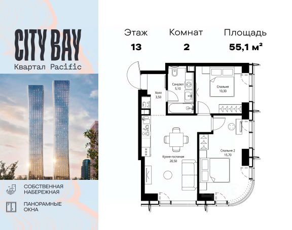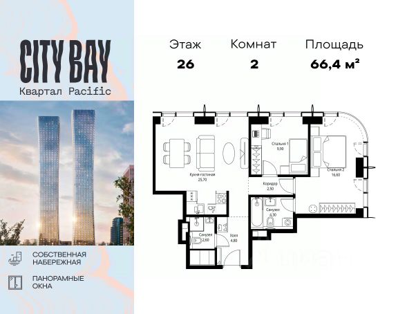 Прямая продажа от застройщика. Продаётся 1-комнатная квартира общей площадью 34 м² без отделки в ЖК City Вау, квартале Pacific, на 20-м этаже 59 этажного дома. Концепция жилого комплекса City Вау - настоящий город в городе с отлично развитой инфраструктурой и собственной благоустроенной набережной. На территории жилого комплекса расположено пять кварталов - Atlantic, Pacific, Indian, North, Cliff. Жилой квартал City Вау отличается оригинальной концепцией и выделяется среди других проектов такими характеристиками как: - Архитектура, - Виды из окон, - Природное окружение, вызывая гордость у жителей и восхищение у прохожих. Вся жизнь района Покровское-Стрешнево строится вокруг водных объектов: - Пойма реки Сходни с уникальной экосистемой, - Речка Химка и Химкинское водохранилище, - Москва-река, - Канал имени Москвы. Кругом вода, и местные с удовольствием этим пользуются. А сразу за рекой - центр водного спорта в Строгино с вейк-парком и яхт-клубами. Помимо воды, здесь очень много зелени: - Рядом Сходненский ковш памятник природы, естественный амфитеатр глубиной 40 метров; - Парк при усадьбе Братцево с фруктовым садом; - Дубовая роща "Маяк", - Алешкинский лес; - Лесопарк Покровское-Стрешнево с пляжами и бобрами. Главные транспортные артерии района: - Волоколамское шоссе, - Таганско-Краснопресненская линия метро и МЦД-2. Всего за 20 минут можно добраться до центра на машине или метро, а МЦД связывает ЖК City Вау с северными, восточными и юго-восточными районами. Компания MR предлагает своим клиентам специальные условия приобретения квартир в рамках программ ипотечного кредитования от банков-партнеров.