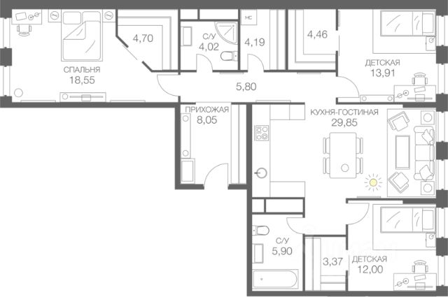 Предлагается Вашему вниманию 4х-комнатная квартира бизнес-класса, на 8-м этаже, без отделки, в Жилом комплексе HEADLINER". ЖК HEADLINER - логическое архитектурное продолжение легендарного МОСКВА-СИТИ. HEADLINER расположен в престижном пресненском районе ЦАО, в 2 минутах ходьбы от станции метро и МЦК "Шелепиха" и в 13 минутах на автомобиле от Кремля. Инновационный жилой квартал для современных жителей мегаполиса. Насыщенная внутренняя инфраструктура полностью удовлетворяет самым взыскательным запросам будущих резидентов. Также в непосредственной близости всё разнообразие городского окружения. Парки, скверы, спорткомплексы, фитнес и wellness клубы, дворец водного спорта. А также школы, гимназии, детские сады. спортшкола, школа олимпийского резерва. В шаговой доступности торговые центры, банки, музеи, выставочные комплексы, живописная набережная Москвы-реки. HEADLINER это десять монолитных корпусов высотой до 54 этажей со студиями, одно-, двух-, трех - и четырехкомнатными квартирами с отделкой и без, видовые квартиры на верхних этажах. Подземный паркинг. Продуманные, эргономичные планировки на любой вкус. Огороженная территория, охрана, консьержи, закрытые дворы. Отделка холлов выполнена из натурального камня и дерева. Среди функциональных пространств — меблированные лаундж-зоны и переговорные комнаты, колясочные, гостевые уборные. HEADLINER создан для тех, кто ценит близость исторического центра, многогранную инфраструктуру, высокий статус жилья и детально продуманный комфорт. Квартира от застройщика на проезде Шмитовский в Москве.