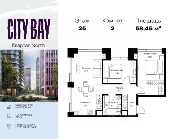Прямая продажа от застройщика. Продаётся 2-комнатная квартира общей площадью 61.48 м² с предчистовой отделкой в ЖК City Вау, квартале North, на 2-м этаже 48 этажного дома. Концепция жилого комплекса City Вау - настоящий город в городе с отлично развитой инфраструктурой и собственной благоустроенной набережной. На территории жилого комплекса расположено пять кварталов - Atlantic, Pacific, Indian, North, Cliff. Жилой квартал City Вау отличается оригинальной концепцией и выделяется среди других проектов такими характеристиками как: - Архитектура, - Виды из окон, - Природное окружение, вызывая гордость у жителей и восхищение у прохожих. Вся жизнь района Покровское-Стрешнево строится вокруг водных объектов: - Пойма реки Сходни с уникальной экосистемой, - Речка Химка и Химкинское водохранилище, - Москва-река, - Канал имени Москвы. Кругом вода, и местные с удовольствием этим пользуются. А сразу за рекой - центр водного спорта в Строгино с вейк-парком и яхт-клубами. Помимо воды, здесь очень много зелени: - Рядом Сходненский ковш памятник природы, естественный амфитеатр глубиной 40 метров; - Парк при усадьбе Братцево с фруктовым садом; - Дубовая роща "Маяк", - Алешкинский лес; - Лесопарк Покровское-Стрешнево с пляжами и бобрами. Главные транспортные артерии района: - Волоколамское шоссе, - Таганско-Краснопресненская линия метро и МЦД-2. Всего за 20 минут можно добраться до центра на машине или метро, а МЦД связывает ЖК City Вау с северными, восточными и юго-восточными районами. Компания MR предлагает своим клиентам специальные условия приобретения квартир в рамках программ ипотечного кредитования от банков-партнеров.