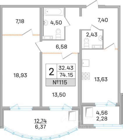 В квартире имеется два санузла. В ванной комнате уже установлены вся техника и мебель.