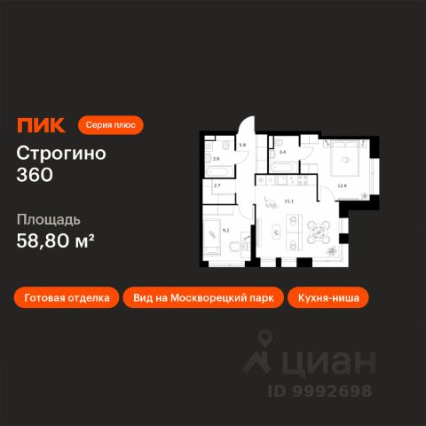 Новостройка! Продается 3-комн. кв-ра площадью 92 кв.м, (Корпус 1.2, Секция 1) 4 этаж 30-этажного дома в Строгино 360 от ПИК. Проект, где каждый день будет наполнен гармонией и новыми возможностями, где можно найти идеальный баланс между энергией большого города и спокойствием природного окружения. Это настоящая экосистема в окружении четырех парков и набережной Москвы-реки, где современная архитектура, умные технологии и продуманная среда создают новое качество жизни. Здесь дом — не точка на карте, а пространство состояния: покоя, сосредоточенности, внутренней свободы.Ты всё ещё в городе. Но ты уже в стороне от его суеты. Мы создаем многофункциональный район с уникальной идентичностью, интегрированный в городскую ткань Москвы. Ключевой принцип — комплексное развитие территории, учитывающее потребности всех групп пользователей: от жителей и бизнеса до гостей города. Проект максимально раскрывает потенциал места за счет синтеза современной архитектуры, динамичной деловой среды и уникального природного ландшафта — акватории Москвы-реки и зеленых массивов. "Строгино 360" — больше чем жилой квартал. Здесь создана вся необходимая инфраструктура для комфортной и насыщенной жизни. Главной артерией станет пешеходный бульвар длиной 3,4 км с магазинами, кафе и зонами отдыха. Для детей построены современные детские сады и школы с классами и лабораториями от "Ростеха" и с программами, созданными при участии МФТИ. Любителей активного образа жизни ждут спортивный центр, зоны воркаута, памп-трек и водные виды спорта на Строгинском затоне. А в деловом кластере можно работать рядом с домом. #d04.02# Артикул 1052124 (Застройщик ООО "СЗ "ЛУЧ")