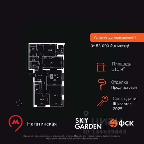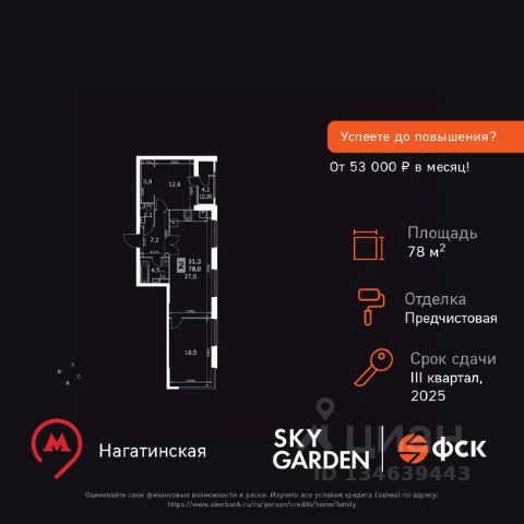 УСПЕЕТЕ КУПИТЬ ДО ПОВЫШЕНИЯ? От 53 000 рублей в месяц! Прямая продажа от застройщика! Жилой Комплекс бизнес-класса. Продаётся 3-к квартира номер 1274 общей площадью 78.9 кв.м. на 15-м этаже 30 этажного здания. Отделка Whitebox. Цена с учётом скидки. Особенности квартиры: - Мастер-зона с гардеробной. Просторное место для отдыха и удобного хранения вещей. - Просторная спальня, в которой можно разместить большую кровать. - Угловая планировка - больше пространства для ваших идей. - Увеличенная ширина окна/окон - больше света и визуального простора. - Увеличенное количество окон - дополнительное освещение и свежий воздух. - Угловое остекление - свет и воздушность в каждой комнате. - Гостевой санузел - комфорт и удобство для ваших гостей. - Евроформат - просторное и удобное жилье с отличной планировкой. - Гибкая планировка - создайте пространство по своему вкусу. - Можно оборудовать 2 или более рабочих места - пространство для нескольких человек. - Можно оборудовать рабочее место - комфорт для работы и учёбы. - Можно сделать распашные двери - удобный доступ и стильный акцент. - Просторная мягкая зона - комфорт и уют для отдыха всей семьи. - Возможность добавить спальное место - дополнительный комфорт для гостей. - Проходная кухня-гостиная - идеальное пространство для общения и готовки. - Гардеробная - удобство для хранения и организации вещей. - Ниша под шкаф - компактное и удобное место для вещей. - Лоджия - уютное место для отдыха и тишины. Квартира с предчистовой отделкой (White box). Вам не придется заниматься черновыми и трудоёмкими работы, а чистовую отделку и дизайн - сделайте на свой вкус. Информация о комплексе: Sky Garden расположен в районе Покровское-Стрешнево. На территории этого района шумит листвой одноименный парк. Зеленый живописный район, реки и каналы поблизости, чистый свежий воздух из подмосковных листов - идеальное место, чтобы ощутить себя частью природы. При этом развитая образовательная, социальная и транспортная инфраструктура оставят вам все преимущества жизни в мегаполисе. Sky Garden - идеальный баланс между природной и городской средой. Транспортная доступность: Всего в 12 минутах пешком до м. Тушинская и 15 минутах до станции Тушинская МЦД. На автомобиле: 2 км до Волоколамского шоссе, 2,5 км до МКАД и 15 км до Садового кольца Внутренняя инфраструктура: К вашим услугам современные игровые площадки: тут ваши дети с удовольствием смогут лазить по бревнам, штурмовать горки и стараться не промокнуть, бегая под струями фонтана. В Sky Garden полно возможностей как для совсем маленьких, так и для взрослых. Предусмотрены активности: мастер классы по йоге на английском газоне, воркаут- площадка, велопарковки. Также в вашем распоряжении на территории комплекса будут: поликлиника, аптека, супермаркет, зона для отдыха, сухой фонтан и площадка для подростков. Пространство для работы, оборудованное кофепоинтом и удобными переговорными. Также к вашим услугам кафе и рестораны в коммерческом
