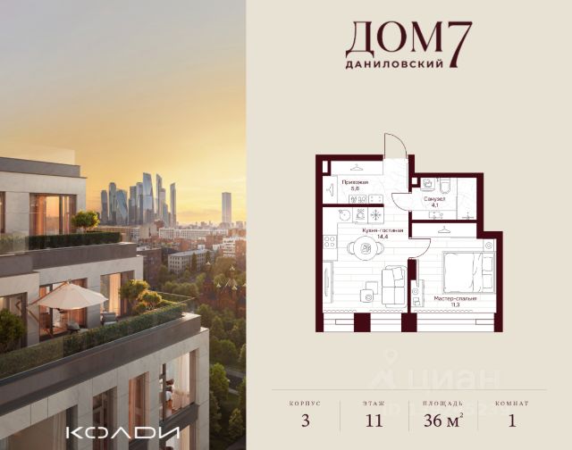 Продается 3-к квартира общей площадью 111.20 кв.м на 9 этаже в жилом квартале премиум-класса "Дом 7 Даниловский". Срок сдачи: 2 квартал 2027 года. Клубный жилой квартал "Дом 7 Даниловский" расположится в тихом уголке "старой Москвы" поблизости от центра города, на улице Серпуховский Вал. Приватный проект вдали от городского шума станет оазисом спокойствия и гармонии среди суеты мегаполиса. Автором архитектурной концепции стало именитое российское бюро "Остоженка". В проекте представлены квартиры как с предчистовой отделкой white box, так и с дизайнерской чистовой отделкой, а также 5 видовых пентхаусов с собственными террасами. На первых этажах расположатся разнообразные сервисы, включая: • Фитнес-зал; • Камерный ресторан; • Детские игровые; • Коворкинг и переговорные; • Лаунж-зоны. На внутренней территории квартала появится всесезонный сад площадью 1 га, разработанный архитектурной дизайн-студией GAFA, где каждый найдет то, что ему по душе: места для занятий спортом и настольным теннисом, детские площадки, уединенные уголки для медитации и спокойного отдыха. Для удобства жителей предусмотрен Консьерж-сервис 24/7. В подземной части дома будет расположен паркинг на 137 машино-мест, а также келлеры. На съезд и выезд будет работать система распознавания номеров. "Дом 7 Даниловский" это жизнь премиум-класса, которой хочется наслаждаться каждый день. Продается квартира от застройщика на улице Серпуховский Вал в Москве.