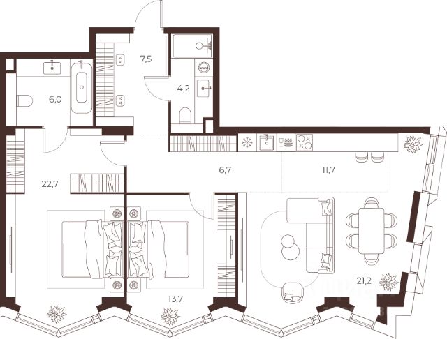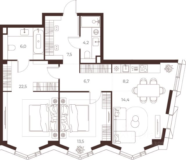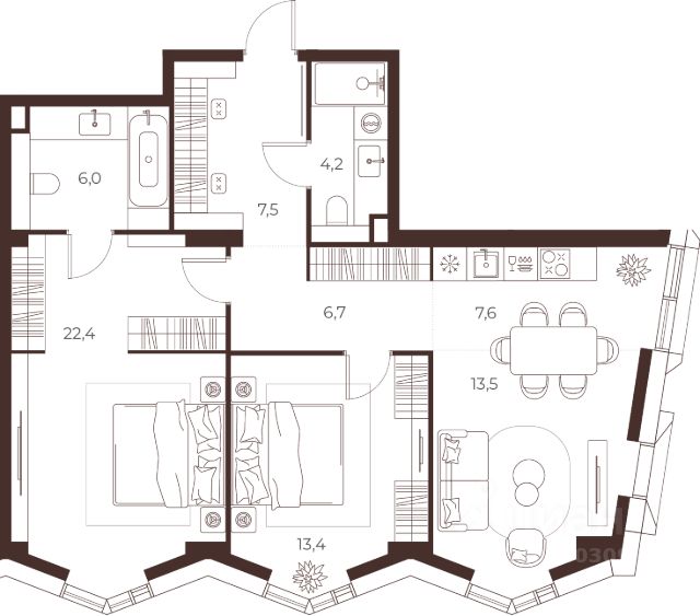 МАСТЕРС — премиальный дом в престижной северной части Москвы, всего в 15 минутах езды от Кремля. Непосредственная близость к метро "Аэропорт" обеспечивает превосходную транспортную доступность. Это идеальный баланс приватности, природы и динамики столицы. Приватный двор: атмосфера загородного отеля Приватный двор — продолжение жилого пространства с атмосферой роскошного загородного отеля. Натуральные материалы, всесезонный сад из более чем 600 деревьев и кустарников. Во дворе — авторская мебель индивидуального производства, пергола с водной чашей и развивающая детская площадка. Вечерняя ландшафтная подсветка создаёт неповторимый уют. Линейный парк: природа мастерства Современный парк гармонично сочетает природу и инфраструктуру. Здесь сохранены десятки взрослых деревьев. Для детей — игровые площадки и сенсорные тропы. Для взрослых — места для отдыха и спорта, коворкинг и амфитеатр, а также площадка для йоги и аптекарский огород. Квартиры: мастерство внутри Более 100 вариантов планировочных решений — для максимальной индивидуальности. Угловые форматы квартир и панорамное остекление наполняют пространство светом. Доступны квартиры с мастер-спальнями, террасами, гардеробными и ванными с окном. Лобби: форма вдохновения Двухсветное мастер-лобби площадью 160 м² впечатляет эффектным панорамным остеклением и дизайнерской парадной лестницей. Клубная гостиная трансформируется под разные форматы мероприятий. Для деловых встреч здесь предусмотрены коворкинг и акустическая кабина для звонков. Во всех лобби расположены лаундж-зоны, колясочные, зарядки для самокатов и лапомойки. Паркинг: мастерство в деталях* Двухуровневый паркинг на 363 места и индивидуальные кладовые площадью от 4 до 6 м² для хранения вещей. Инфраструктура для повседневного комфорта включает зарядные станции для электромобилей, мойку колёс и подкачку шин. Продается квартира от застройщика на улице Викторенко в Москве.