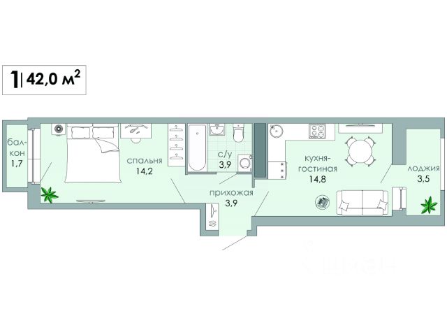 • ✅ Минимальная площадь: 21,5 м²