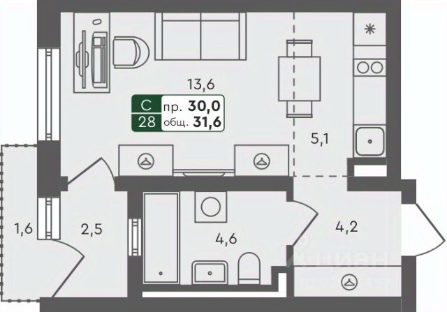 • ✅ Минимальная площадь: 30 м²
