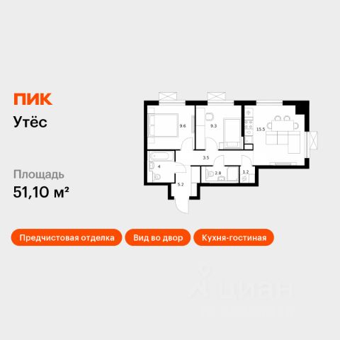 Продаётся 2-комн. квартира площадью 53,2 кв.м на 14 этаже 17 этажного дома (Корпус 9, Секция 1) проекта ПИК Нокса парк. Светлый просторный подъезд на уровне земли, функциональная планировка, большие окна, предчистовая отделка.