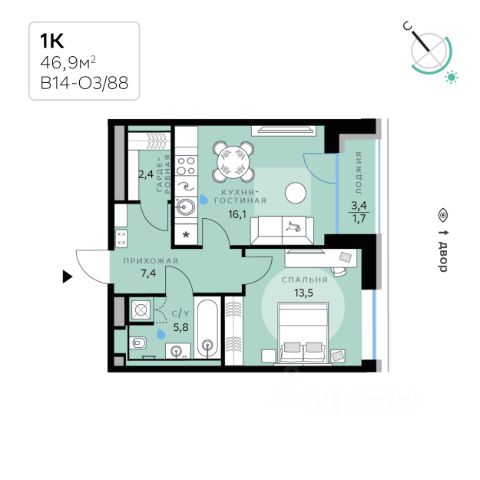В продаже — однокомнатная квартира, общей площадью 46,27 кв. м. Квартира расположена на шестом этаже десятиэтажного корпуса Балансд в квартале В16 нового района СберСити, который строит Сбер. Архитектуру квартала В16 создало итальянское бюро ARCHEA middle east: каждый дом узнаваем, но вместе они складываются в спокойный, цельный ансамбль. В облицовке сочетаются тёплые оттенки кирпича и металла, за счёт игры фактур фасады выглядят живыми и меняются в разное время дня. Строгая геометрия поддерживает ритм города, а мягкая природная палитра помогает чувствовать себя дома, а не в деловом квартале. Дом возводится по технологии монолитного строительства. Квартиры передаются без отделки, что позволяет будущим владельцам реализовать собственные дизайнерские решения и индивидуальные планировки. В квартирах предустановлена система "умный дом", объединяющая управление квартирой, домом и прилегающей территорией. Можно регулировать климат и освещение голосом или через смартфон. Высота потолков — от 3,12 м. Квартал состоит из девяти домов средней этажности — от 7 до 10 этажей. Корпуса формируют большой внутренний двор площадью два гектара. Во дворе предусмотрены зоны для разных сценариев: просторные площадки для детей, пространства для активного досуга и спорта, тихие места для отдыха и спокойного времени, а также удобные рабочие места под открытым небом. Здесь легко найти своё — для жизни, здоровья и занятий тем, что действительно нравится. В доме предусмотрены: уютное лобби с зоной ожидания, лапомойка, санузел, помещение для хранения колясок и велосипедов, подземный паркинг. СберСити — это новый жилой и деловой район на западе Москвы, в одном из самых экологически чистых и престижных мест столицы. Это первая в России и крупнейшая в мире инновационная городская среда, созданная по международным стандартам зелёного проектирования. Здесь внедряются решения в области энергоснабжения, вакуумного мусороудаления, тестирования зелёных технологий, а в дальнейшем — системы искусственного интеллекта для управления домами и городской инфраструктурой. Строительство проекта началось в 2021 году, заселение первых корпусов — с лета 2024-го. Общая площадь территории — 461 га, из них более 2,5 млн кв. м жилья и около 833 тыс. кв. м офисных пространств. Будет построено 7 школ, 13 детских садов и 2 поликлиники. В СберСити будут жить 65 тыс. человек и работать 70 тыс. Развитием территории занимается АО "Рублёво-Архангельское", входящее в группу Сбер. СберСити — место, где хочется жить, работать и растить детей. Переезжайте в СберСити!