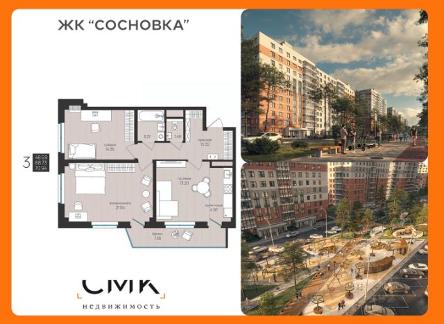 Жилой Район "Сосновка" - это современная территория для жизни с развивающейся инфраструктурой, расположенная в продолжении Московского проспекта в Архангельске. Срок сдачи первого дома - 4 кв. 2026 г. Жилой район состоит из 13-ти разновысотных жилых комплексов. На его территории будут построены два детских сада, две общеобразовательных школы и физкультурно-оздоровительный комплекс с бассейном, а также продуктовые магазины формата "у дома". Остановки общественного транспорта находятся в непосредственной близости с районом и помогают свободно перемещаться по городу. Это обусловлено основными транспортными артериями города: Ленинградским и Московским проспектами. Школы и детские сады будут расположены поблизости, поэтому детям не нужно переходить дорогу или ехать на общественном транспорте. Их образование и досуг реализуем на территории жилого района, что поможет повысить безопасность и сокращение затрат времени на дорогу. Важной частью обустройства жилого района является озеленение в том числе соснами, что создаст ощущение уединения и проживания за городом без потери развитой инфраструктуры. Собственная газовая котельная позволит на 45% снизить затраты на теплоснабжение и поможет не зависеть от централизованной системы подачи теплоносителя во внутридомовые системы отопления. Таким образом, горячее водоснабжение в доме не будут отключать во время общегородских гидравлических испытаний, а начало отопительного сезона зависит от решения собственников. Объекты социальной значимости На территории нового района будут построены физкультурно-оздоровительный комплекс с бассейном, два детских сада и две новые общеобразовательные школы. Образование детей и досуг всей семьи будет реализован полностью
