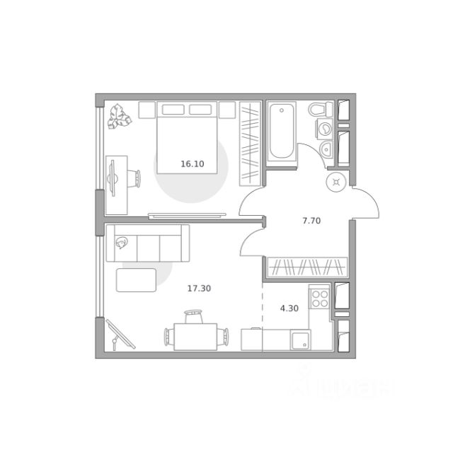 Продаётся 2-комнатная квартира 303, площадью 44,40 м², на 23 этаже в ЖК "Бригантина" корпус 1. Стоимость — от 12782604 руб. Квартира white box, планировка угловая, окна во двор.