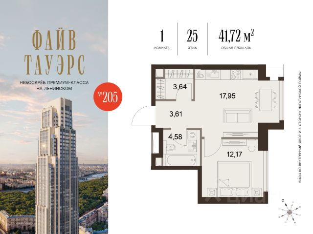 Гибкие программы рассрочки: 0% без переплат и удорожания; первый взнос от 10%. • Уникальная, нетипичная планировка с детально продуманными функциональными зонами • Просторная прихожая с гостевым санузлом, отделяющая входную группу от основной части квартиры • Большая кухня-гостиная с тремя панорамными окнами • Приватная мастер-спальня площадью почти 20 кв. м с двумя панорамными окнами • Просторная ванная комната с окном в мастер-спальне О проекте ФАЙВ ТАУЭРС — первый жилой небоскрёб на Ленинском проспекте и самый высокий дом столицы за пределами делового кластера "Москва-Сити". Премиальный небоскрёб представляет собой ультрасовременное, высокотехнологичное здание, идеальный синтез стилей культовых высоток Москвы и небоскребов Нью-Йорка и поражает воображение уникальными видами, монументальной роскошью и совершенством форм. Величественная панорама, открывающаяся из окон вашей квартиры, завораживает: легендарные сталинские высотки, шпиль главного корпуса МГУ, "Москва-Сити", спорткомплекс "Лужники". Окружение 75-этажный жилой комплекс премиум-класса расположен в историческом Донском районе. Транспортная инфраструктура проекта сделает жизнь резидентов ФАЙВ ТАУЭРС комфортной и продуманной: удобные выезды на ТТК и Садовое кольцо, 10 минут до метро "Ленинский проспект", 11 минут на МЦК до Москва-Сити. Рядом расположены крупные деловые и бизнес-центры, а в шаговой доступности — 500 га парков, образуемых Музеоном, Парком Горького и парком "Воробьевы горы". Инфраструктура Архитектурное бюро Олега Клодта разработало дизайн общественных пространств ФАЙВ ТАУЭРС: гранд-лобби, камерную библиотеку c камином и лифтовую зону. Все необходимые сервисы сосредоточены на первых этажах небоскрёба: кафе, винотека, салон красоты, фитнес и детский клуб. Приватный Sky Club 49 — респектабельный лаундж с открытой террасой и ограниченным доступом на 49 этаже — только для резидентов. Квартиры в ФАЙВ ТАУЭРС Все квартиры в ФАЙВ ТАУЭРС будут сданы с предчистовой отделкой (white box). Это позволит будущим резидентам комплекса сосредоточиться на творческой части ремонта, не связанной с организацией черновых работ. В жилом небоскребе ФАЙВ ТАУЭРС запланировано 596 премиальных квартир и 87 типов планировочных решений, которые можно адаптировать под личные запросы и сценарии проживания. В комплексе премиум-класса представлены не только двух- и трехкомнатные квартиры с угловым остеклением, но и однокомнатные с видом на две стороны и трехкомнатные квартиры с видами на три стороны, что является редким предложением на рынке недвижимости. Купить квартиру с отделкой в районе Донской в Москве.