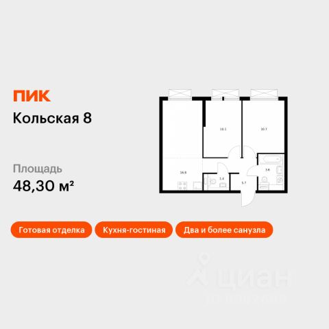 2-комнатная квартира площадью 53,8 кв.м., расположенная на 51 этаже 53-этажного небоскреба бизнес-класса это именно то, что вы ищете! AFI Tower — это не просто жилой комплекс. Это место, где каждая деталь заботливо продумана, чтобы сделать вашу жизнь удивительной и комфортной. Транспортная доступность - AFI Tower расположен близко к проезду Серебрякова, что обеспечивает быстрый доступ к Третьему Транспортному Кольцу и МКАД. За 15 минут можно легко добраться до ключевых транспортных магистралей в зависимости от дорожной ситуации. - В пешей доступности находятся станции метро "Свиблово" и "Ботанический сад" — это дает возможность жителям легко перемещаться по городу. Рядом также расположена станция Московского центрального кольца у "Ботанического сада". Архитектура: - Башня AFI Tower привлекает своим смелым архитектурным решением. Фасад, выполненный в виде мягкой волны, делает здание узнаваемым и уникальным в контексте стандартных высоток. С высотой в 182,4 метра, она становится неповторимой доминантой в Свиблово. Внутренняя инфраструктура: - Лобби AFI Tower выделяется современным дизайном, высокими потолками от 2,9 м до 3,3 м и использованием качественных материалов. Это визитная карточка здания, предоставляющая посетителям первое впечатление. Внутреннее пространство продумано для комфорта и функциональности. Характеристики квартир: - Здесь каждая квартира — уникальная история. От 19 до 116 м² площади, три варианта отделки — светлый, темный или white box, чтобы ваш дом отражал ваш вкус и стиль. Принимайте решение не просто о покупке жилья, а о создании своего собственного уютного уголка. Удобства внутри AFI Tower: - В самом доме целый мир удобств и развлечений. Ресторан, библиотека, прачечная и коворкинг — каждое место наполнено энергией и возможностями. Вечерами, уютная кинозона с кинопроектором и настольными играми создает атмосферу веселья и отдыха. Экология и окружение: - Жить в AFI Tower — значит быть частью уникального окружения. Близость к пруду и зеленому скверу придает местности неописуемое очарование. Вид из окон на Москву, ВДНХ и парки создают вдохновляющий пейзаж. А безопасность и удобство парковки добавляют приятные моменты к вашему образу жизни.