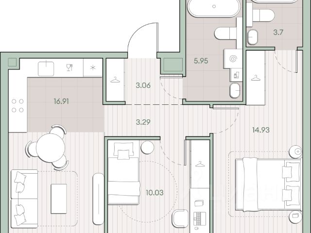 Трёхкомнатная wellness-резиденция площадью 114.2 кв. м. на 8 этаже с видом на двор и центр в доме премиум-класса Springs. В квартире выполнена чистовая дизайнерская отделка. Резиденция наполнена светом и воздухом, благодаря панорамному остеклению и высоким потолкам. На первом этаже дома расположены: - фитнес-центр с бассейном; - SPA с хаммамом; - бьюти-зона с массажным кабинетом. - ресторан. Все сервисы доступны исключительно для резидентов. Всего в 2 минутах ходьбы от дома находится заповедный парк Фили прекрасное место для спокойного и активного отдыха. Зеленый массив, набережная, велотропы и открытые зоны для йоги, а также шахматный клуб, летний кинотеатр, множество беседок и кофеен. До делового комплекса Москва-Сити всего 16 минут, а центр — в 14 минутах езды по Кутузовскому проспекту. Удобный выезд к Рублёвскому шоссе — отличная возможность на выходных сбежать с детьми за город, потратив на дорогу меньше получаса. Концепция благоустройства Springs, разработанная студией Wowhaus, воплощает идею взаимного проникновения парка и озеленения внутренней территории: естественная растительность, дополненная акцентами из цветников, плавно вступает во двор. В сочетании с бионической архитектурой дом является органичным продолжением природного ландшафта парка.