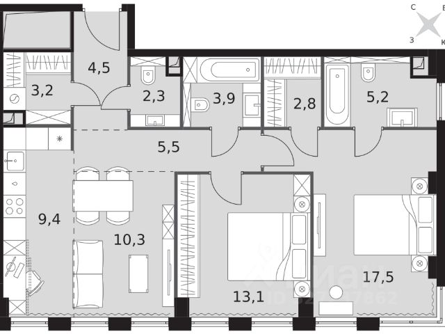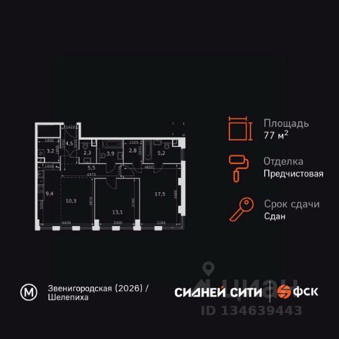 Цена указана с учётом скидки при 100%-й оплате, несубсидированной ипотеке, рассрочке (кроме программы "Рассрочка 0%"). В жилом квартале продаётся 3-комнатная квартира площадью 72.30 кв.м с предчистовой отделкой. Квартира расположена на 10 этаже 48 этажного корпуса 1 в жилом комплексе комфорт класса Левел Звенигородская (компания Level Group/Левел групп). Отличная транспортная доступность - 5 мин. пешком до метро "Звенигородская" (откроется к окончанию строительства); - 18 мин. пешком до станции МЦК "Хорошёво" и станции БКЛ "Народное ополчение"; - 4 мин. на авто до ТТК; - 8 мин. на авто до Садового кольца; - 15 мин. на авто до Кремля. Продуманный архитектурный проект - Концепция от студии Станислава Михаловского, в основу которой легло единение природы и города; - Двухкамерные стеклопакеты в окнах, алюминиевый и ПВХ профиль - в квартирах тепло зимой и прохладно летом; - С верхних этажей открываются панорамные виды на город, Москву-реку, "Москва-Сити" и Москворецкий парк; - Лобби со всеми удобствами: окна в пол, высокие потолки до 4,7 м, лаунж-зоны, колясочные, гостевые санузлы и мойки для лап животных; - Централизованные водонагреватели гарантируют круглогодичную подачу горячей воды в каждую квартиру. Благоустройство Концепция благоустройства разработана совместно с бюро UNK landscape. Высота башен приближается к 200 метрам - они словно касаются неба. Небесный простор проецируется на территорию двора с помощью подсветки, визуально увеличивая пространство и отражаясь в авторских элементах архитектуры. На территории площадью 0,45 га расположатся: - "Облако событий" - место встреч и общения; - "Облако спорта" - всё для поддержания себя в форме; - "Облако принятия решений" - пространство для работы на свежем воздухе; - "Облако спокойствия" - для отдыха в тишине природы; - "Облако игр" - площадки для подростков и самых маленьких. Инфраструктура В жилом комплексе откроется 21 коммерческое помещение: продуктовые лавки, кафе, салоны красоты, службы доставки и творческие студии. Этап 1 включает строительство двухуровневого подземного паркинга. Всего здесь расположится 351 машино-место, включая семейные места, и 264 кладовых помещения. В распоряжении жителей развитая инфраструктура района: 15 супермаркетов, 5 спортивных объектов, 9 медучреждений, 7 детских садов, 4 школы, 3 благоустроенных парка - всё в шаговой доступности. Инженерия Комфортное перемещение внутри домов будут обеспечивать надёжные лифты с доступом в паркинг с жилых этажей. В каждом корпусе предусмотрено до шести кабин, включая сервисные лифты. Попасть на территорию комплекса можно только по единому ключу доступа. Видеонаблюдение установлено на входах в подъезды, в лобби, в общих зонах, на въезде в паркинг. Гости смогут связаться с жителями дома через входные видеопанели, а управлять доступом на территорию можно через видеодомофон или приложение на телефоне.
