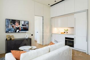 ID 46644. Предлагаются авторские 2-комнатные дизайнерские апартаменты в элитном ЖК Roza Rossa от известного итальянского архитектора Piero Lissoni в Хамовниках. Пространство грамотно зонировано. Общая площадь 50 кв. м. Высота потолков 3.5 м. Выполнен светлый ремонт в современном стиле с использованием натуральных материалов: мрамора и дерева. Апартаменты полностью обставлены премиальной мебелью и техникой от ведущих брендов: Warendorf, Pietra d'Avola, Miele, Fantini. Укомплектованы сплит системой, теплыми полами, высокоскоростным интернетом, тропическим душем, видеодомофоном, акцентным освещением. Функциональная планировка: светлая гостиная с несколькими окнами и скрытой кухней, тихая спальня, большая ванная комната с душевой кабиной. Окна выходят в сторону ул. Россолимо. Комплекс относится к премиум-сегменту: круглосуточная охрана, видеонаблюдение, высококлассный консьерж-сервис, подземный паркинг. Для пешей прогулки поблизости расположен сквер Девичьего поля, парк усадьба Трубецких. Престижная инфраструктура: рядом деловой квартал Красная Роза с множеством лучших ресторанов, кофеен, салонов, судий красоты и всем необходимым для поддержания высокого уровня жизни. Удобная транспортная доступность с комфортным выездом на Садовое кольцо и ТТК. До ближайшей станции метро Парк культуры - 10 минут пешком.