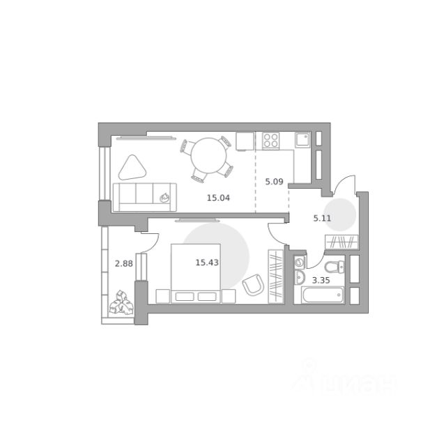 Продаётся студия 845, площадью 26,34 м², на 10 этаже в ЖК "Ильинойс" корпус 3. Стоимость — от 7173877 руб. Квартира без отделки, планировка односторонняя, окна во двор.