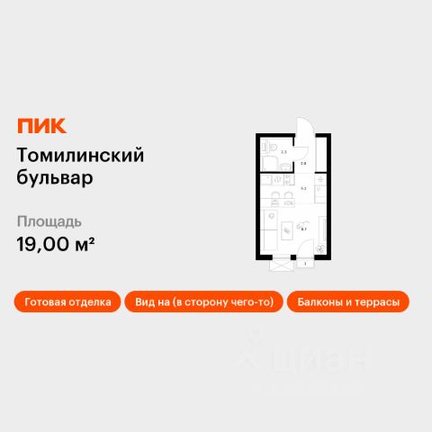 Помещение 19,1 кв.м, расположено на втором этаже, высокие потолки 3,2 м., студия с ремонтом, санузел выложен кафельной плиткой, оборудован: унитаз, раковина, поддон с душевой системой.