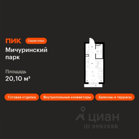 Продаётся квартира-студия площадью 19,7 кв.м на 22 этаже 24 этажного дома (Корпус 4.2, Секция 1) проекта ПИК Мичуринский парк. Светлый просторный подъезд на уровне земли, функциональная планировка, большие окна, c отделкой. "Мичуринский парк" расположен на западе Москвы, в районе Очаково-Матвеевское, в 7 минутах пешком от метро "Озёрная". Архитектурную концепцию корпусов 4.4 и 4.5 разработала российская студия KK ARCHSTUDIO. У каждого корпуса свой характер — его формируют уникальная форма зданий и пластика фасада. Динамичные складки эркеров образуют характерный геометрический рисунок, который поддерживают и дополняют архитектурные детали. В корпусах 4.4 и 4.5 открытые балконы разнообразных форм: прямоугольные, фигурные. Все балконы выходят в тихий внутренний двор-парк. В эркерной части обоих корпусов предусмотрены лоджии. У подъездов будет два выхода: на улицу и во двор-парк. В наших дворах мы установим столы и лавочки со встроенными зарядными устройствами. Не нужно будет возвращаться домой, чтобы зарядить смартфон или ноутбук: можно весь день работать на свежем воздухе. В лобби "Мичуринского парка" будет удобная зона ожидания, где можно встретить друзей, курьера или дождаться такси, а также гостевая туалетная комната со столиком для пеленания. На территории проекта предусмотрен подземный паркинг и кладовые с надежной системой вентиляции, пожаротушения и системой круглосуточного видеонаблюдения. Собственная инфраструктура проекта включает два детских сада и две школы. Также по соседству с жилым комплексом будет построен многофункциональный торгово-офисный комплекс Lakes. Вдоль всего "Мичуринского парка" будут проходить несколько пешеходных бульваров с местами для отдыха. Рядом с проектом несколько зелёных зон, которые прекрасно подойдут для отдыха и спорта на свежем воздухе. Жители "Мичуринского парка" смогут выбирать, куда отправиться на прогулку: в пешей доступности Очаковский парк, парк Школьников и парк Олимпийской деревни, а на автомобиле можно быстро добраться до Тропарёвского лесопарка и Мещерского парка. Вблизи "Мичуринского парка" расположены ведущие вузы: МИРЭА, МГИМО, РАНХиГС, Институт радиотехники и телекоммуникационных систем и Академия ФСБ. Артикул 983837 (Застройщик ООО "СПЕЦИАЛИЗИРОВАННЫЙ ЗАСТРОЙЩИК "ОЗЁРНАЯ 44")