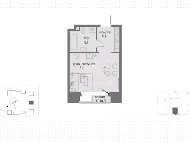 Продается студия в премиальном комплексе ЖК Остров , площадью 29,2 кв.м , без отделки , 7 этаж , 4 корпус .