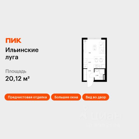 Продается уютная, светлая, теплая квартира-студия с высоким потолком (3,40м.) в ЖК "Ильинские луга"