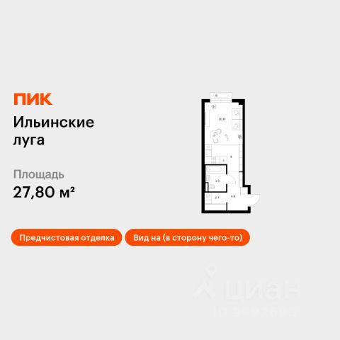 Продаётся квартира-студия площадью 27,8 кв.м на 6 этаже 9 этажного дома (Корпус 4.3, Секция 2) проекта ПИК Ильинские луга. Светлый просторный подъезд на уровне земли, функциональная планировка, большие окна, предчистовая отделка. Жилой район "Ильинские луга" находится в 10 километрах от МКАД по Новорижскому шоссе, в 20 минутах на автомобиле от станций метро "Волоколамская", "Тушинская" и "Строгино". В будущем ближе к проекту, в 9 минутах пути на машине, откроется станция "Ильинская" Рублёво-Архангельской линии, которая будет соединять Арбатско-Покровскую линию и Большую кольцевую линию. Сейчас в квартале начались продажи в корпусах 3.2, 3.3, 3.4, 3.5 и 3.6. "Ильинские луга" — масштабный проект, в который входит девять детских садов, четыре школы и поликлиника. Он строится в престижном и экологичном районе среди лесов и памятников природы. За 5 минут от жилого квартала можно доехать до Рублёво-Успенского шоссе, а за 30 минут — до центра Москвы. До крупного торгового центра "РИГАМОЛЛ" всего 5 минут на автомобиле, а до ТЦ "Твой дом" и гипермаркета "Глобус" — 10 минут. В "Ильинских лугах" строятся только девятиэтажные дома — такая архитектура соответствует спокойной жизни за городом. В каждом дворе-парке есть места для отдыха, детские и спортивные площадки. А ещё, здесь уже открыт большой PlayHub "Гравити" — современное игровое пространство с космической тематикой, холмами, зонами для игр и отдыха жителей любого возраста. На первых этажах уже работают магазины, кафе и пекарни. Места для отдыха от "Ильинских лугов" тоже недалеко: 10 минут на машине — и вы в музее-усадьбе "Архангельское". Также рядом находится Лохин остров — памятник природы, где водятся речные черепахи, есть места для кемпинга и возможность сплавиться по реке. Артикул 1011938 (Застройщик ООО "СЗ "ГРАДОЛИМП")