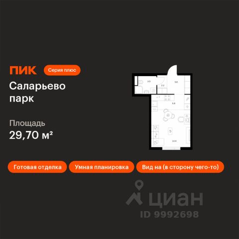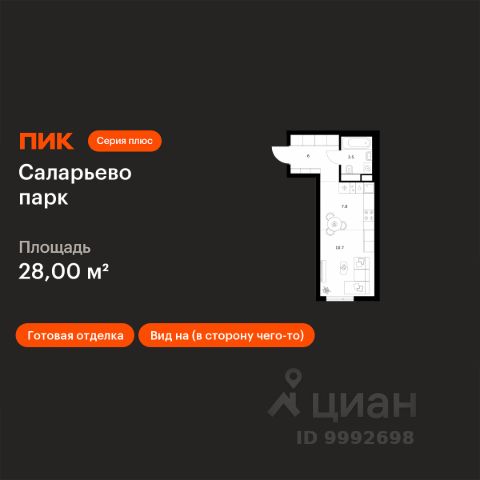 Продаётся квартира-студия площадью 21,8 кв.м на 5 этаже 17 этажного дома (Корпус 20, Секция 1) проекта ПИК Саларьево парк. Светлый просторный подъезд на уровне земли, функциональная планировка, большие окна, c отделкой. Жилой район "Саларьево парк" расположен в Новой Москве, в четырёх километрах от МКАД по Киевскому шоссе. Две станции метро: "Саларьево" и "Филатов луг", — находятся в пешей доступности от проекта. Дойти до них можно за 510 минут. В квартале уже создана качественная среда, где есть абсолютно всё для полноценной жизни, работы и отдыха. Благодаря удобному расположению проекта всё важное будет рядом: детские сады, школы, кафе и рестораны, шопинг в торговых центрах, фитнес и даже аэропорт. Все корпуса в квартале гармонично сочетаются, образуя единую городскую среду. Между собой их объединяет невысокая этажность и натуральная цветовая гамма. Здесь приятно гулять и проводить время на улице всей семьёй. В "Саларьево парке" создана уникальная образовательная среда, включающая в себя шесть школ, рассчитанных на 6 250 учеников. Две из них уже открыты, их посещает 2 300 детей. Также на территории "Саларьево парка" находится 12 детских садов, один из которых с бассейном. Сейчас уже открыты 7 садов. В "Саларьево парке" открыта уникальная игровая площадка — PlayHub "Оригами". Здесь есть ручей, горка-труба и рельефные холмы. Взрослые смогут отдохнуть в уютном кафе, пока дети играют. Также на территории проекта есть SportHub — большая спортивная зона, разделённая по интересам и возрастам. Здесь можно заниматься разными видами спорта: футболом, баскетболом, волейболом и стритболом. Зимой центральную часть площадки превращают в каток. Во дворах-парках жилого квартала есть места для отдыха, детские и спортивные площадки. На первых этажах домов расположены магазины, кафе и полезные сервисы. Также вблизи проекта есть несколько масштабных торговых центров. До ТЦ "Саларис" пять минут пешком, до "Рио", Metro Cash & Carry и "Леруа Мерлен" — пять минут на автомобиле. Артикул 946670 (Застройщик ООО "Специализированный Застройщик "Тирон")