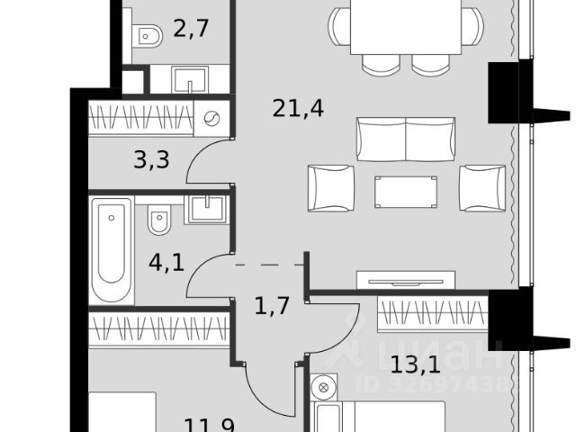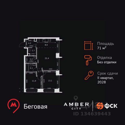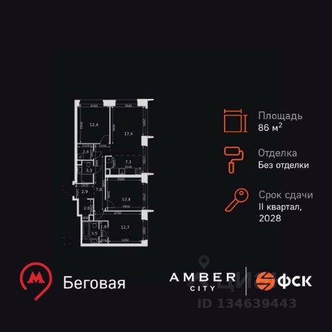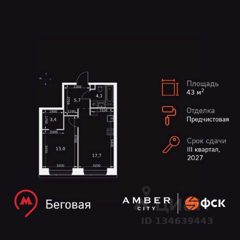 ИПОТЕКА 10% ДЛЯ ВСЕХ БЕЗ НАЦЕНОК! Прямая продажа от застройщика! Жилой Комплекс премиум-класса. Продаётся 2-к квартира номер 1296 общей площадью 45.6 кв.м. на 53-м этаже 57 этажного здания. Без отделки. Цена с учётом скидки. Особенности квартиры: - Мастер-зона с санузлом и гардеробной. Всё для вашего комфорта и удобства, включая личный санузел и гардероб. - Просторная спальня, в которой можно разместить большую кровать. - Линейная планировка - максимальная функциональность и удобство. - Увеличенная ширина окна/окон - больше света и визуального простора. - Увеличенная высота окна - больше воздуха и света. - Гостевой санузел - комфорт и удобство для ваших гостей. - Ниша под стиральную машину - удобство и экономия пространства. - Евроформат - просторное и удобное жилье с отличной планировкой. - Гибкая планировка - создайте пространство по своему вкусу. - Место для игры/занятия спортом - идеальное пространство для активных детей. - Линейная кухня - функциональность и практичность в одном решении. - Проходная кухня-гостиная - идеальное пространство для общения и готовки. - Гардеробная - удобство для хранения и организации вещей. - Ниша под шкаф - компактное и удобное место для вещей. Информация о комплексе: Amber City - это не просто квартал. Это место, куда ведут все маршруты, где рождается вдохновение работать и творить, где счастлива семья и жизнь кипит 24/7. Модная архитектура, высокотехнологичные решения и самодостаточная инфраструктура приближают Amber City к лучшим районам Гонконга и Нью-Йорка. Потрясающие виды на Москва-Сити и центр позволяют заряжаться их амбициозностью, не подчиняясь суете. Стремящиеся ввысь небоскребы, благоустроенный парк с зонами отдыха для взрослых и детей, а также многочисленные объекты инфраструктуры возводятся в западной части центра Москвы. Транспортная доступность: Квартал отличается исключительной транспортной доступностью: большая часть значимых мест Москвы находится на расстоянии 15-20 минут. Такое расположение позволит полностью погрузиться в деловую и культурную жизнь столицы и тратить на дорогу только необходимый минимум времени. Общественный транспорт: - Станция метро "Беговая" - 5 минут пешком - Станция "Беговая" (МЦД-1) - 5 минут пешком - Ж/д станция Беговая - 12 минут пешком - Остановка "2-й Хорошёвский проезд" - 3 минуты пешком - Станция метро "Звенигородская" (строящаяся) - 10 минут пешком На автомобиле: - Звенигородское шоссе - 3 минуты - TTK - 5 минут - Хорошёвское шоссе - 9 минут - Садовое кольцо - 12 минут - Красная Пресня - 15 минут - Тверская - 20 минут - Серебряный бор - 8 минут - Строгинский затон - 8 минут - Москва-Сити - 10 минут - Кремль - 20 минут - Аэропорт Шереметьево - 40 минут Внутренняя инфраструктура: Умелая работа над ландшафтом позволила правильно зонировать многоуровневое пространство, общей площадью 6 гектаров, открывая разнообразные возможности для резидентов Amber City и их детей. Главной артерией квартала станет собственны Продам квартиру первичка на проезде 3-й Хорошевский в Москве.