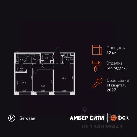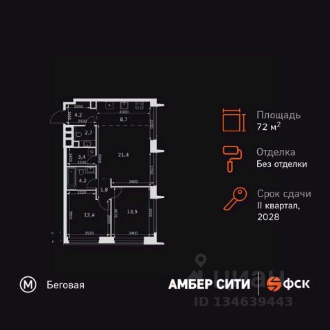 Прямая продажа от застройщика! Успейте забронировать квартиру до повышения стоимости! Жилой Комплекс премиум-класса. Продаётся 2-к квартира номер 654 общей площадью 44.2 кв.м. на 3-м этаже 57 этажного здания. Предчистовая отделка. Цена с учётом скидки. Особенности квартиры: - Организуем показ в удобное для вас время! - Мастер-зона с санузлом и гардеробной. Всё для вашего комфорта и удобства, включая личный санузел и гардероб. - Просторная спальня, в которой можно разместить большую кровать. - Линейная планировка - максимальная функциональность и удобство. - Увеличенная ширина окна/окон - больше света и визуального простора. - Увеличенная высота окна - больше воздуха и света. - Гостевой санузел - комфорт и удобство для ваших гостей. - Ниша под стиральную машину - удобство и экономия пространства. - Евроформат - просторное и удобное жилье с отличной планировкой. - Гибкая планировка - создайте пространство по своему вкусу. - Место для игры/занятия спортом - идеальное пространство для активных детей. - Линейная кухня - функциональность и практичность в одном решении. - Проходная кухня-гостиная - идеальное пространство для общения и готовки. - Гардеробная - удобство для хранения и организации вещей. - Ниша под шкаф - компактное и удобное место для вещей. Квартира с предчистовой отделкой. Вам не придется заниматься черновыми и трудоёмкими работы, а чистовую отделку и дизайн - сделайте на свой вкус. Информация о комплексе: ЖК "Амбер Сити" - вдохновляющий квартал у Москва-Сити с архитектурой мирового уровня. Здесь кипит жизнь 24/7: парки, инфраструктура и виды на центр без городской суеты. Самодостаточная среда для работы, творчества и семьи в духе лучших районов Нью-Йорка и Гонконга. Транспортная доступность: Квартал с исключительной транспортной доступностью: ключевые точки Москвы в 15-20 минутах. Полное погружение в деловую и культурную жизнь столицы с минимальными затратами времени на дорогу. Общественный транспорт: - Метро "Беговая" - 5 минут пешком - Остановка "2-й Хорошёвский проезд" - 3 минуты пешком - Метро "Звенигородская" (строящаяся) - 10 минут пешком На автомобиле: - Москва-Сити - 10 минут - Звенигородское шоссе - 3 минуты - ТТК - 5 минут - Серебряный бор - 8 минут - Садовое кольцо - 12 минут - Кремль - 20 минут - Шереметьево - 40 минут Внутренняя инфраструктура: ЖК "Амбер Сити": многоуровневый ландшафт на 6 гектарах с зелёным бульваром, объединяющим арт-объекты, водные зоны и архитектурные формы. В закрытых дворах на стилобате - детские площадки с сенсорными элементами, зоны отдыха с креслами и настилами для йоги. Навесы с подогревом и зарядками для зимнего сезона. Активности на любой вкус: настольный теннис, петанк, чтение в тишине на оборудованных скамейках. Продуманное пространство для ежедневного отдыха и игр детей и взрослых. Продам квартиру первичка на проезде 3-й Хорошевский в Москве.