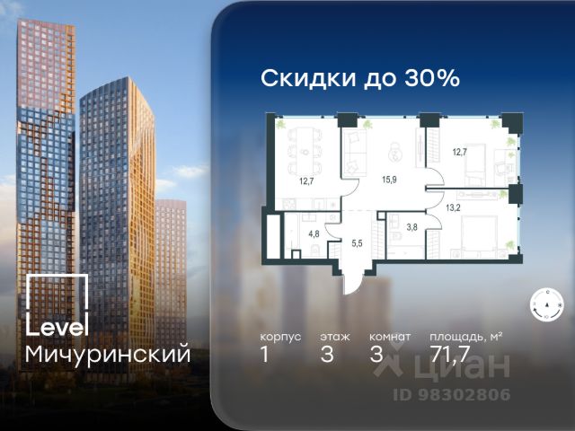 Цена указана с учётом скидки при 100%-й оплате, несубсидированной ипотеке, рассрочке (кроме программы "Рассрочка 0%"). В жилом квартале, расположенном на границе с природным заказником "Долина реки Очаковки", продаётся 2-комнатная квартира площадью 55.40 кв.м без отделки. Квартира расположена на 27 этаже 54-этажного корпуса 1 в жилом комплексе бизнес-класса Level Мичуринский (компания Level Group/Левел групп). Отличная транспортная доступность: - от 10 мин. пешком до станции метро "Мичуринский проспект" - 15 мин. пешком до станции метро "Аминьевская" - 7 мин. на авто до МКАД - 10 мин. на авто до ТТК - 15 мин. на авто до Москва-Сити Продуманный архитектурный проект: - Выразительная архитектура от известных бюро: корпуса 1-6 - СПИЧ, корпуса 7-13 - Borisov Architects; - Из окон открываются живописные виды на парки, Москва-Сити и МГУ; - Высокие потолки до 6,35 м; - Стильные лобби с окнами в пол и высокими потолками до 4,7 м; - С каждого этажа дома на лифте можно спуститься в подземный отапливаемый паркинг. Расположение: Level Мичуринский строится в одном из самых зелёных районов Москвы - Очаково-Матвеевское. Этот уголок столицы идеален для поддержания здорового образа жизни. В шаговой доступности от проекта находятся заказник "Долина реки Очаковки" - 1 мин. пешком и Очаковский парк - 7 мин. пешком. На велосипеде можно добраться до таких парков, как "Событие", парк Олимпийской деревни, парк 50-летия Октября и парк Школьников. В 15 минутах езды на авто расположено более 30 детских садов (из них 14 в пешей доступности), 32 школы (из них 13 в пешей доступности) и 14 вузов. Также в ближайшем окружении - более 25 медицинских учреждений, 11 спортивных клубов и 22 продуктовых супермаркета. Внутренняя инфраструктура: На территории жилого комплекса строится три детских сада и школа. На первых этажах домов откроется супермаркет, фитнес-центр, ресторан, кафе и другие сервисы. Подземные этажи займут паркинги: трёхуровневые - в этапах 1 и 2, одноуровневый - в этапах 3 и 4. Преимущества проекта: - 4,5 га благоустроенной территории с видовым мостом, уличным кинотеатром, зонами для тихого отдыха, работы, воркаута, площадки для петанка, футбола, настольного тенниса и пляжного волейбола. - Дизайнерские лобби с панорамным видом на двор, мойками для лап животных и комфортными зонами ожидания. - Безопасность жителей: круглосуточное видеонаблюдение всех зон общего пользования (лобби, лифты, паркинги, детские площадки), система контроля доступа, управление видеодомофоном через мобильное приложение, единый ключ доступа на территорию жилого комплекса. - Технологии и комфорт: высокоскоростной Wi-Fi в лобби и на придомовой территории, автоматическая система контроля и учёта ресурсов, абонентская связь с консьержем, распознавание номеров автомобилей при въезде в паркинг и выезде из него. Квартира первичка на улице Озерная в Москве.