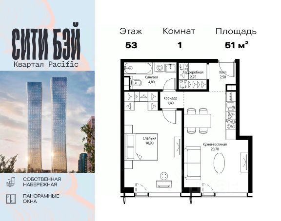 Прямая продажа от застройщика. Продаётся 2-комнатная квартира общей площадью 58.50 м² без отделки в ЖК Сити Бэй, квартале Пасифик, на 8-м этаже 59 этажного дома. Концепция жилого комплекса Сити Бэй - настоящий город в городе с отлично развитой инфраструктурой и собственной благоустроенной набережной. На территории жилого комплекса расположено пять кварталов - Атлантик, Пасифик, Индиан, Норс, Cliff. Жилой квартал Сити Бэй отличается оригинальной концепцией и выделяется среди других проектов такими характеристиками как: - Архитектура, - Виды из окон, - Природное окружение, вызывая гордость у жителей и восхищение у прохожих. Вся жизнь района Покровское-Стрешнево строится вокруг водных объектов: - Пойма реки Сходни с уникальной экосистемой, - Речка Химка и Химкинское водохранилище, - Москва-река, - Канал имени Москвы. Кругом вода, и местные с удовольствием этим пользуются. А сразу за рекой - центр водного спорта в Строгино с вейк-парком и яхт-клубами. Помимо воды, здесь очень много зелени: - Рядом Сходненский ковш памятник природы, естественный амфитеатр глубиной 40 метров; - Парк при усадьбе Братцево с фруктовым садом; - Дубовая роща "Маяк", - Алешкинский лес; - Лесопарк Покровское-Стрешнево с пляжами и бобрами. Главные транспортные артерии района: - Волоколамское шоссе, - Таганско-Краснопресненская линия метро и МЦД-2. Всего за 20 минут можно добраться до центра на машине или метро, а МЦД связывает ЖК Сити Бэй с северными, восточными и юго-восточными районами. Компания MR предлагает своим клиентам специальные условия приобретения квартир в рамках программ ипотечного кредитования от банков-партнеров.