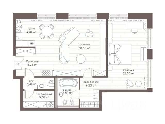 • 3 Спальни, кабинет, просторная гостиная, гардеробные при каждой