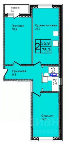Продаётся 2-комнатная квартира в строящемся доме (Корпус 5), срок сдачи: IV-кв. 2027, общей площадью 75.3 кв.м., на 3 этаже.