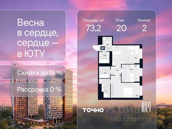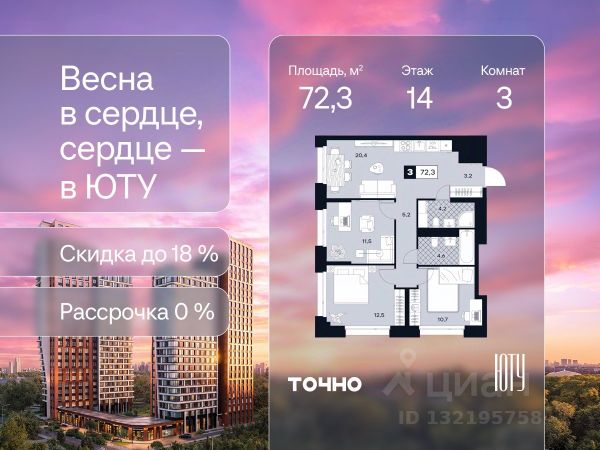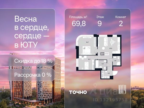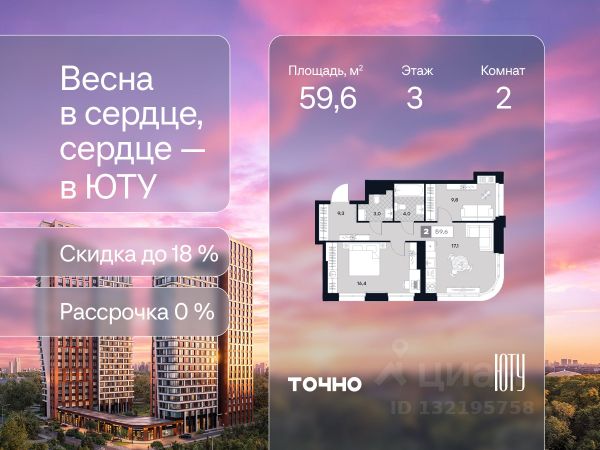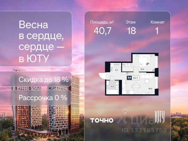 Скидка до 18% в апреле на выделенный пул лотов! ЮТУ — камерный проект бизнес-класса с исключительной архитектурой, видовыми квартирами и подходом к большой благоустроенной набережной канала имени Москвы. Проект создает идеальный баланс жизни в городе. Это приватный оазис, где в любой момент можно сменить обстановку и выбрать любой из тысячи маршрутов к активному отдыху и ярким впечатлениям. Удачное месторасположение: • Первая линия в прибрежной части Химкинского водохранилища • Исключительно тихий и зелёный район Южное Тушино • За 2 минуты можно спуститься к воде, за 10 минут найти зеленые парки и готовую инфраструктуру, за 30 минут доехать до Кремля Концепция проекта: • Две футуристичные башни, соединенные торговой галереей от бюро ATRIUM • 60 неповторяющихся планировок: квартиры с угловым панорамным остеклением, мастер-спальнями и гостиными до 39м², а также просторные квартиры площадью до 128,6 м² Чувство эксклюзивности: • Своя приватная жилая экосистема только для резидентов домов • Лаунж-терраса на крыше • В проекте предусмотрен закрытый двор-парк. Прогрессивные технологии: • 3-х уровневая система безопасности (Face ID, BLE-метки, видеонаблюдение) • Умный паркинг с распознаванием номеров Проект федерального девелопера ТОЧНО, который входит в ТОП-5 девелоперов России по объемам строительства. Квартира первичка в районе Южное Тушино в Москве.